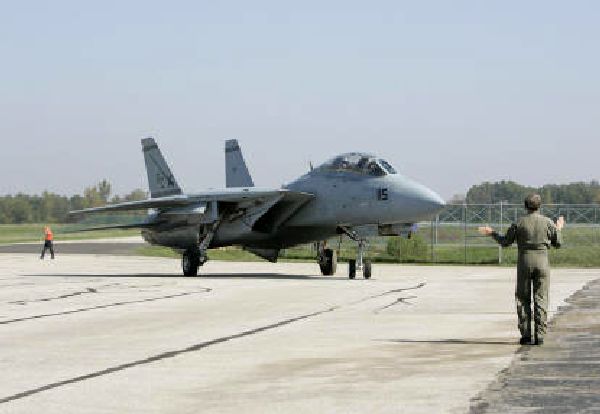 Ferry Crew LT Brian "BEKE" Hodges (pilot) and LT Ashley "CIAO" Augustini (RIO) (Photo courtesy of MAPS Air Museum)