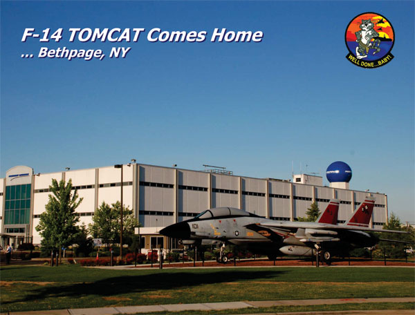 On December 21, 1970, at Grumman Corporation’s flight test center in Calverton, NY, company test pilots Bob Smyth and Bill Miller started the F-14 Tomcat on a 36-year journey to faithfully serve our country. On October 4, 2006, after over-flying Calverton and the Northrop Grumman facility in Bethpage, NY, LCDR Chris Richard and LCDR Bob Gentry brought that journey to an end here at the Tomcat’s Long Island birthplace.